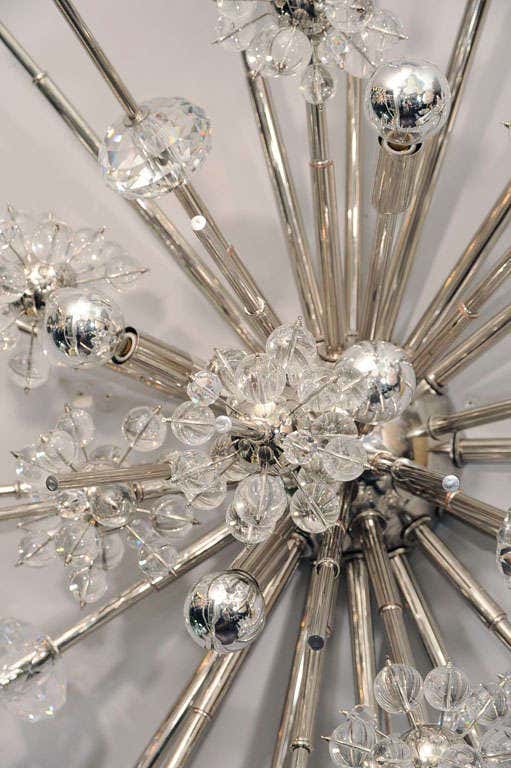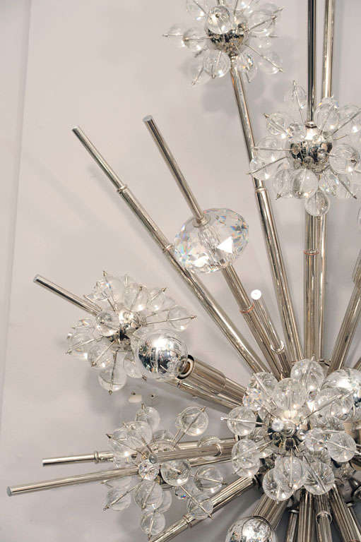 Custom monumental crystal starburst sconce in nickel finish Currently out of stock but available for custom order in different sizes and finishes. Inquire about estimated production lead times.