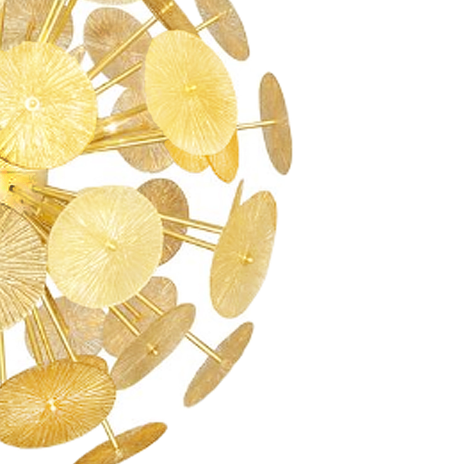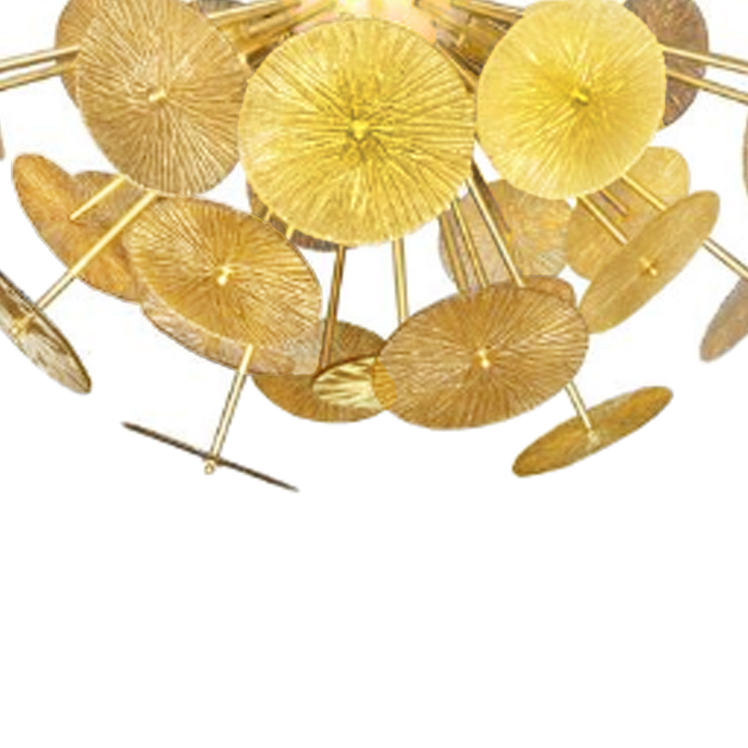 Custom, made to order Hand-blown Murano glass Sputnik-style chandelier with amber glass "Parasol" mounted discs and brass body, Italy 2016. Customization of glass color and finish is available. Lead time 9-10 weeks.