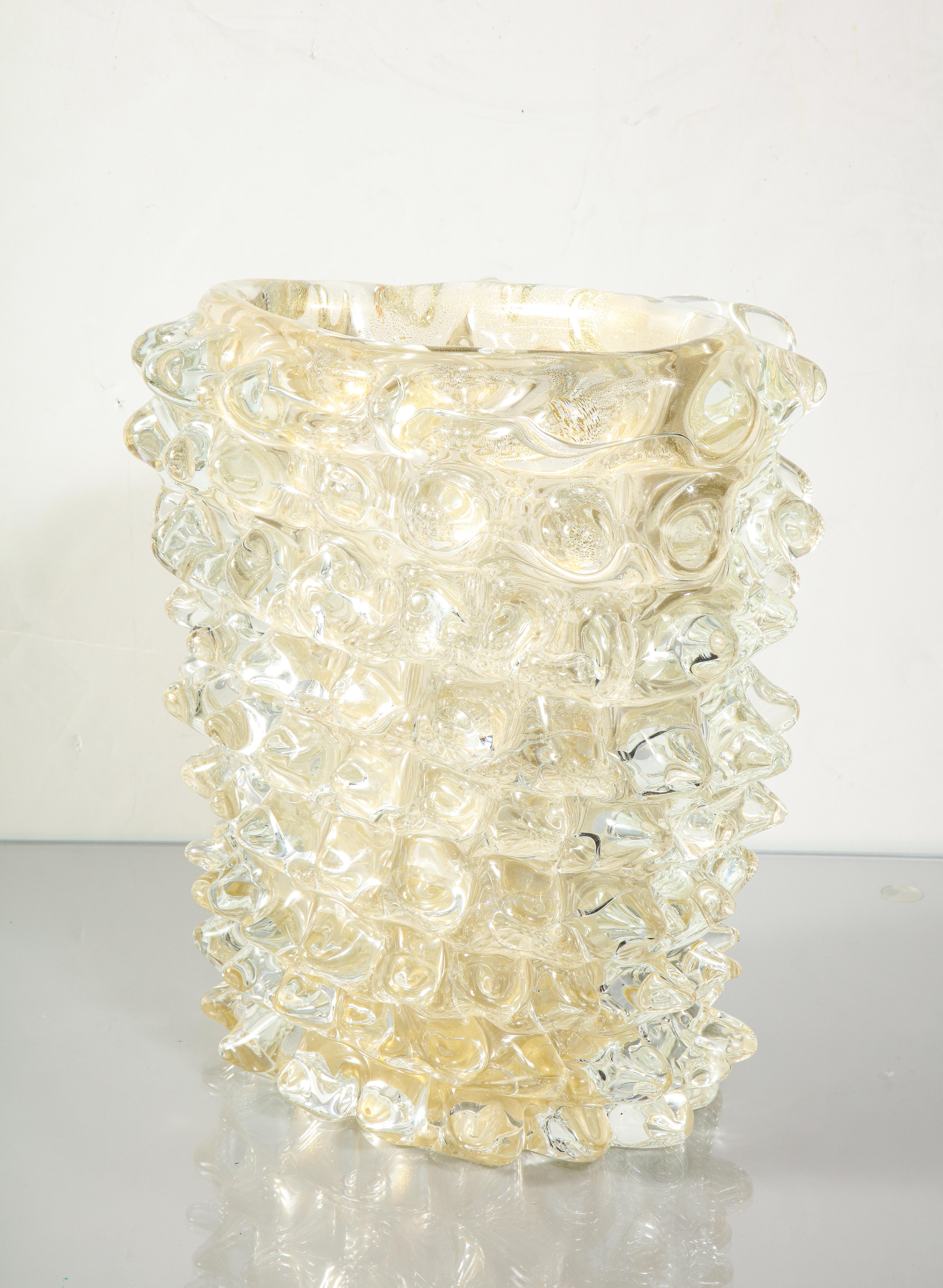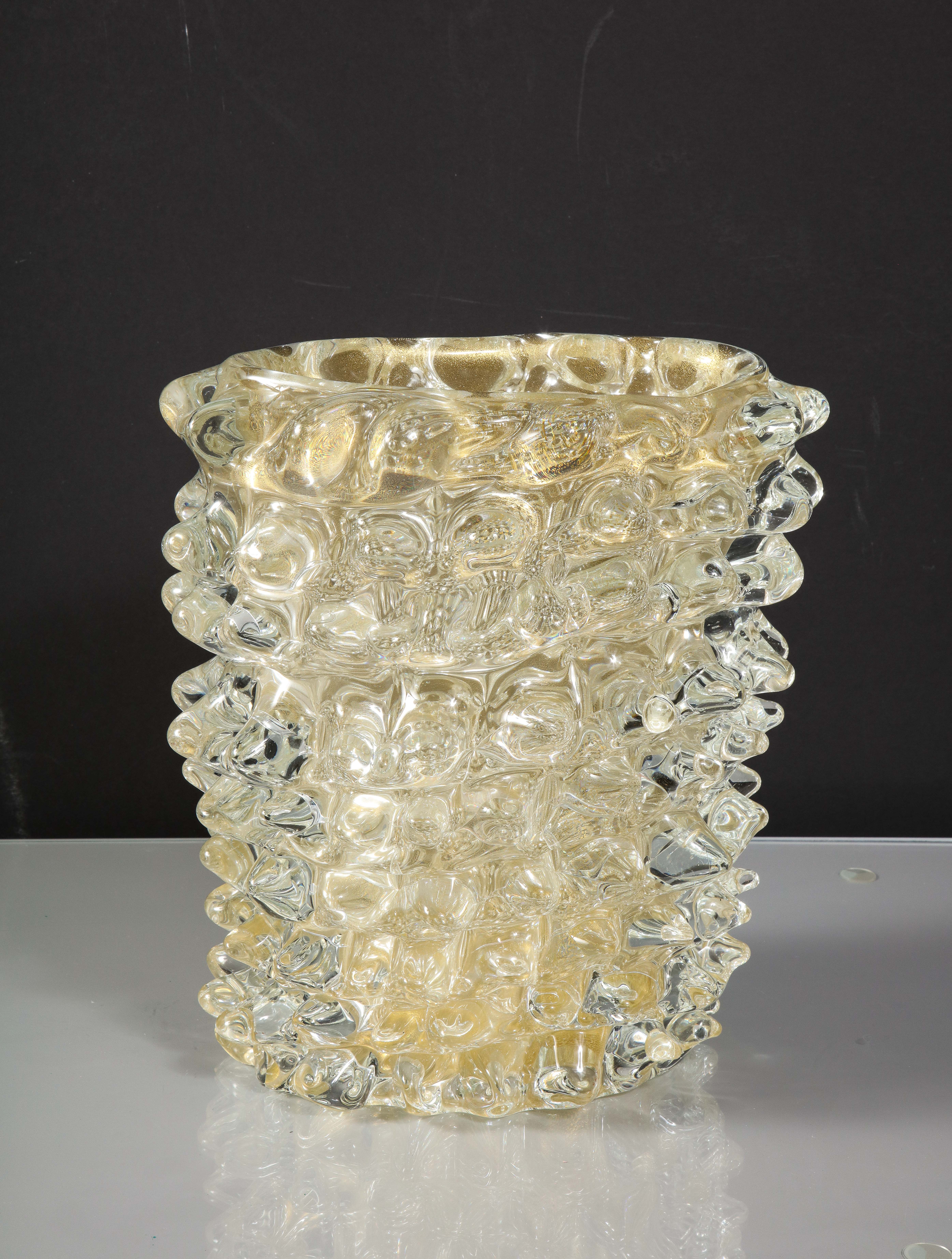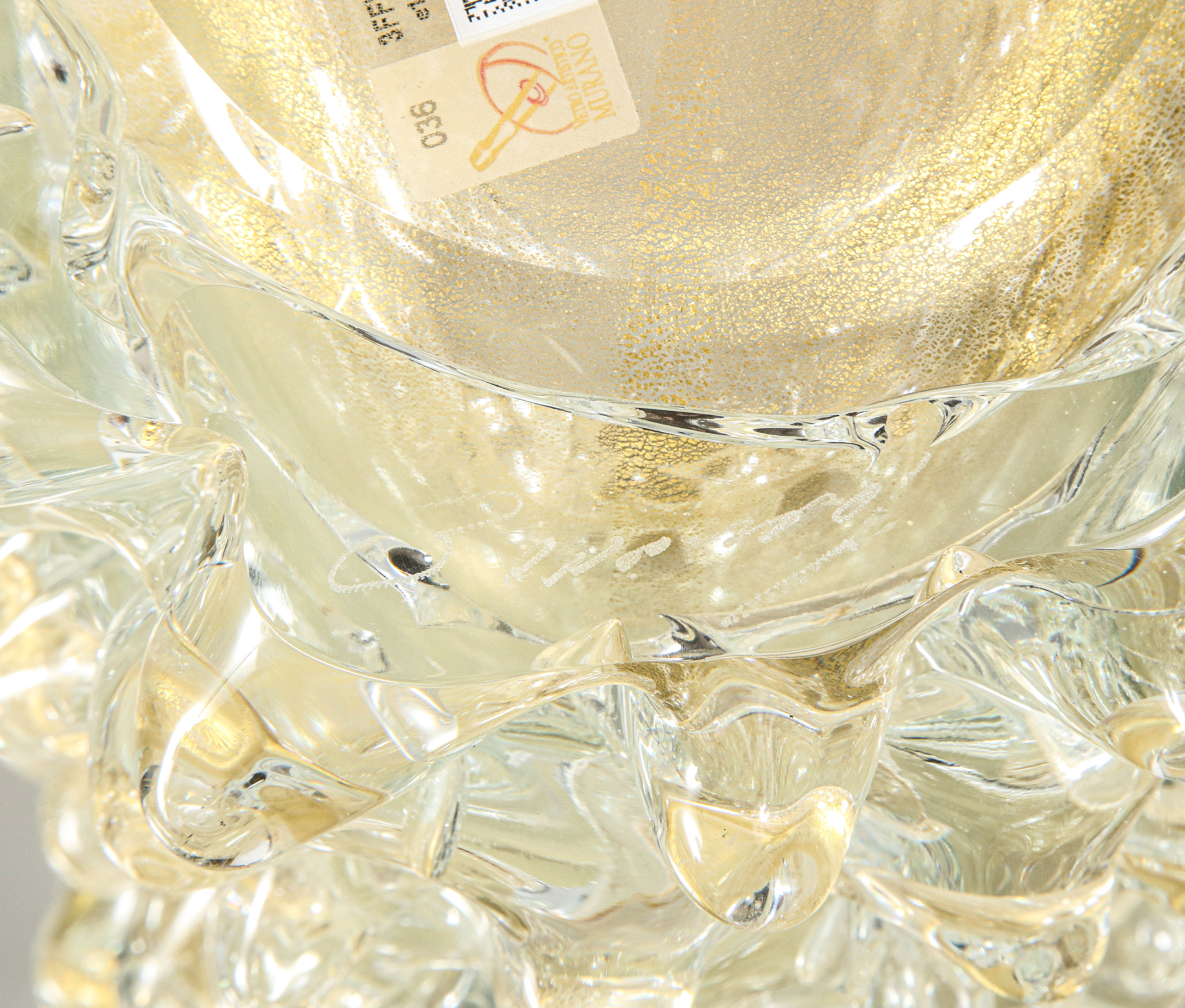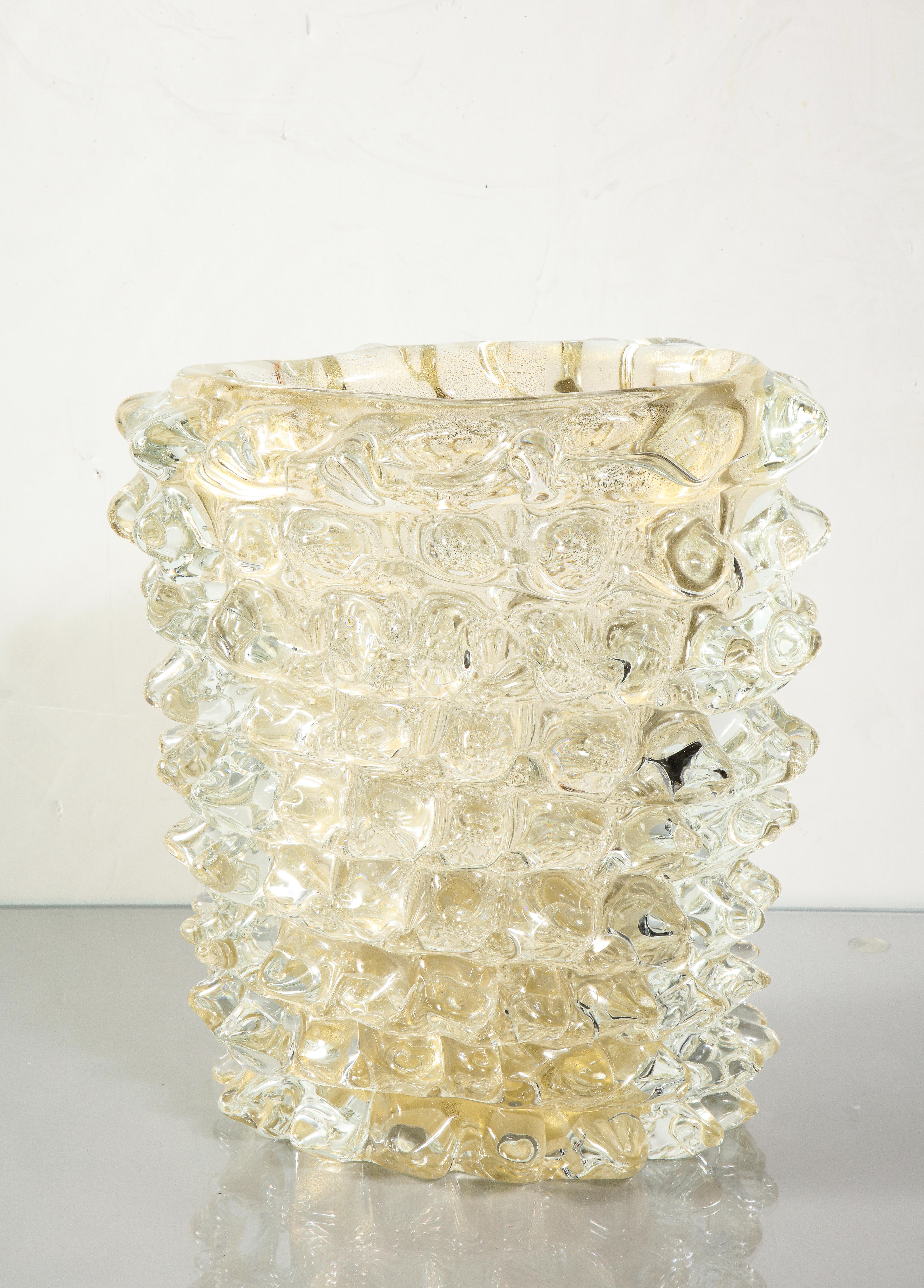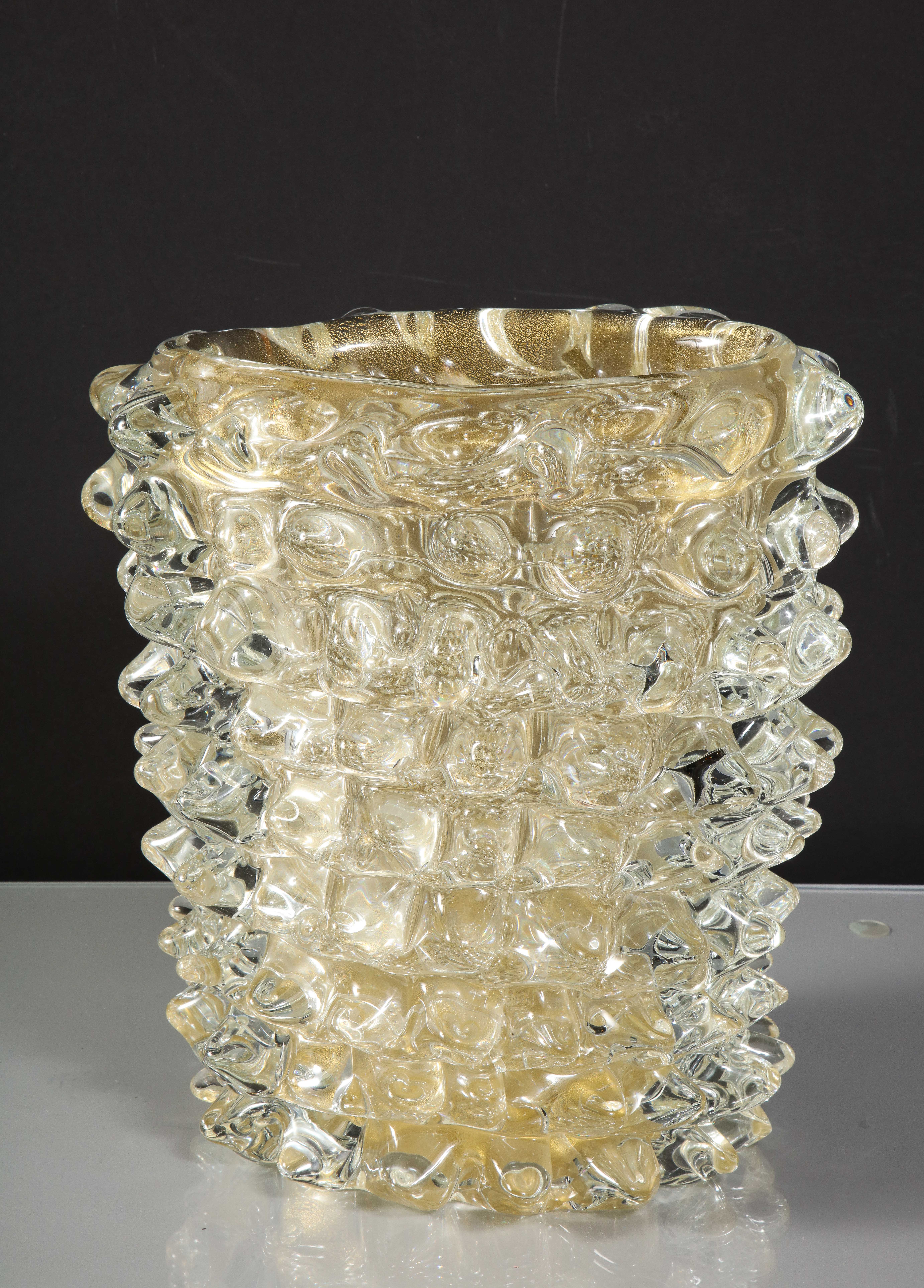 Hand-blown, mid-century style, gold glass vase with spike design in the manner of Barovier, Italy. Currently out of stock but available for custom order. Inquire about estimated production lead times.