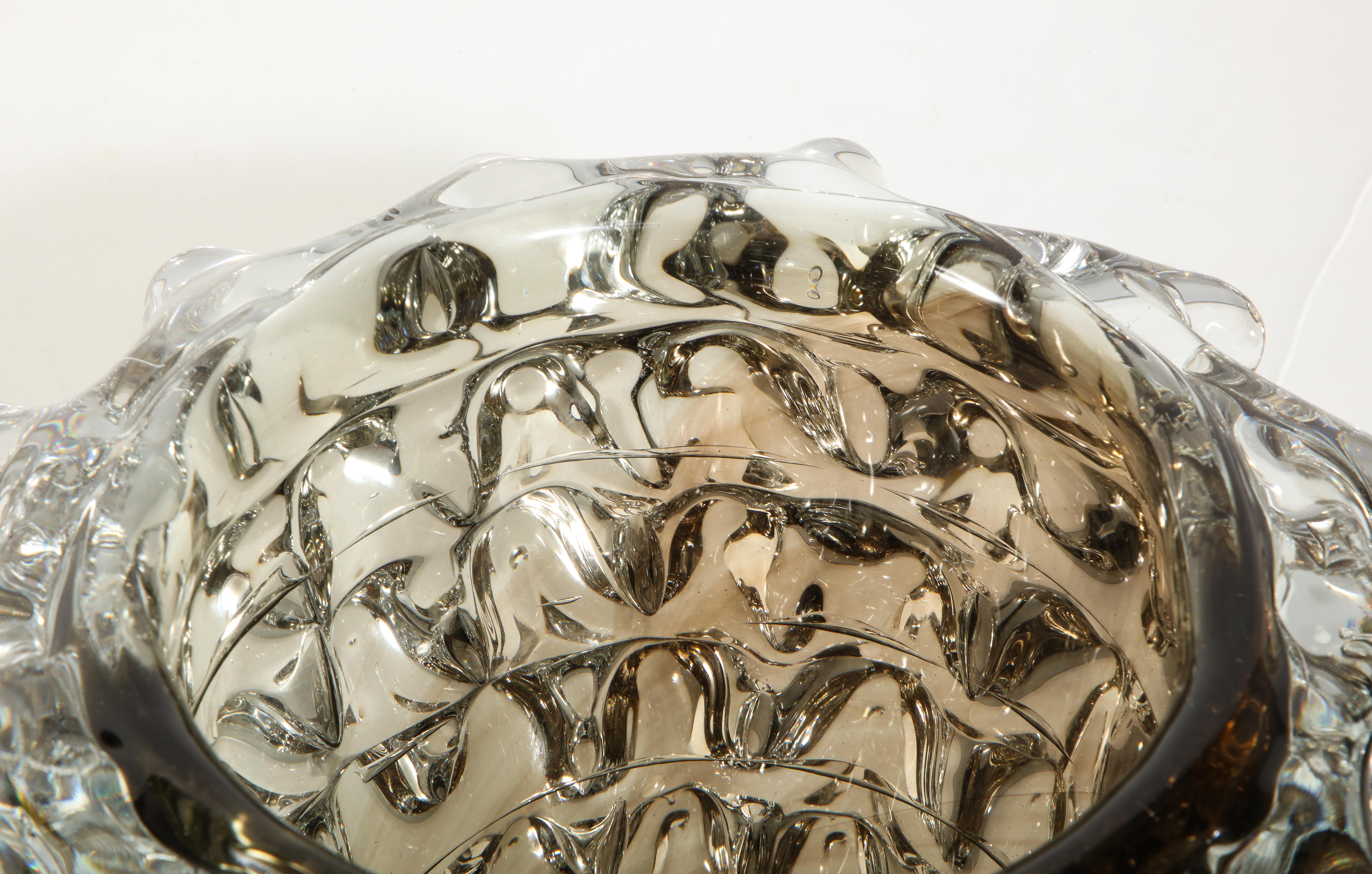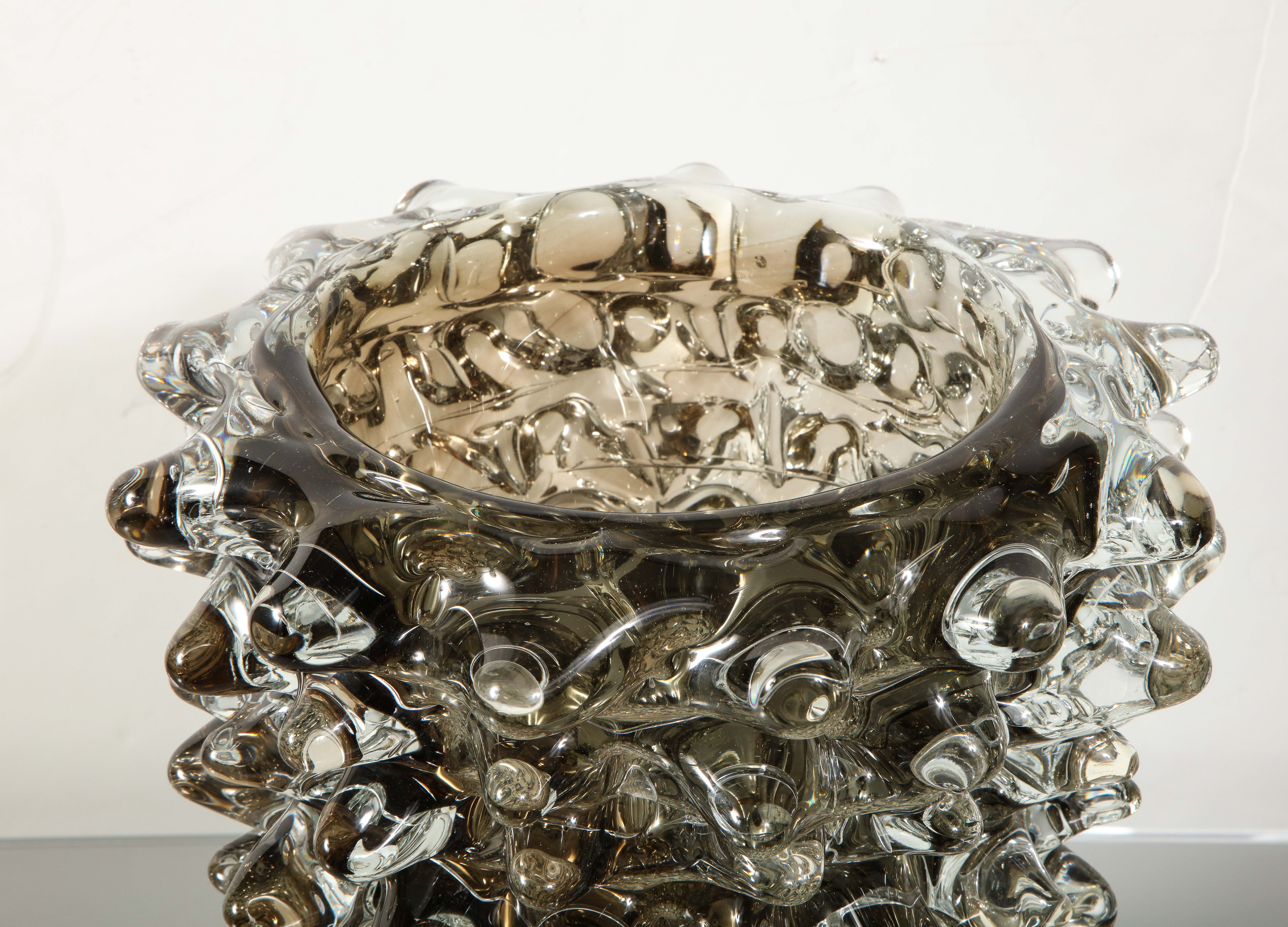Hand-blown, smoke color Murano glass Rostrate vase in the manner of Ercole Barovier, Italy. Currently out of stock but available for custom order. Inquire with Venfield about estimated production lead times.