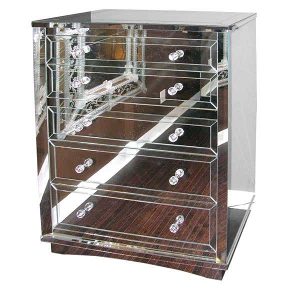Custom Neoclassical modern 5-drawer mirrored highboy. Customization is available in different sizes, finish and hardware.