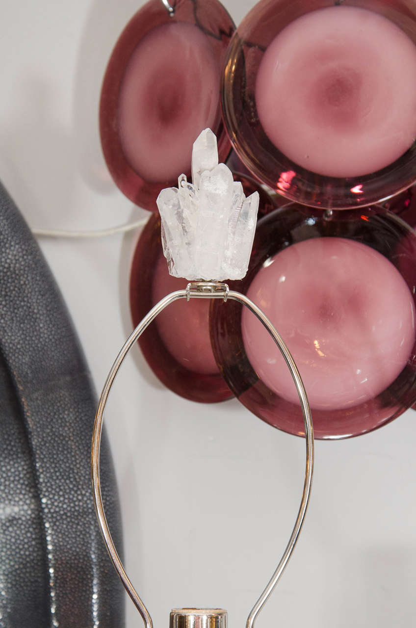 Pair of Custom Clear Quartz Crystal Lamp with Ebony Bases