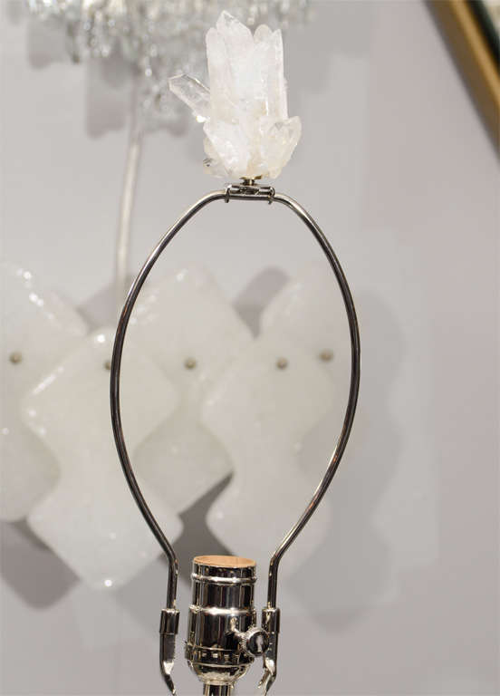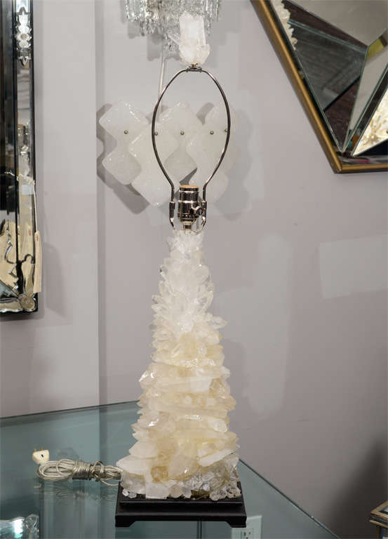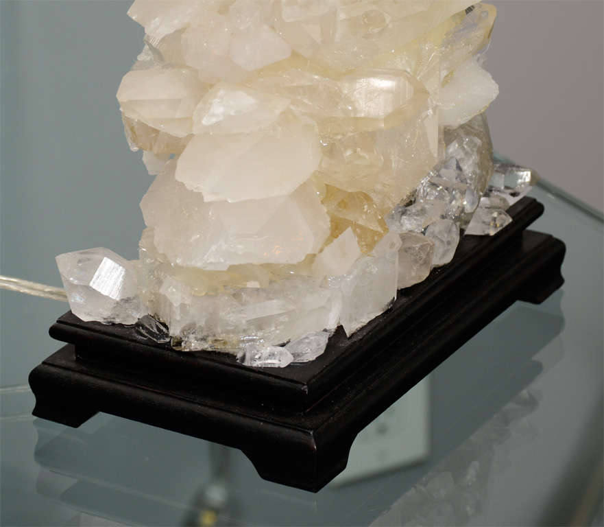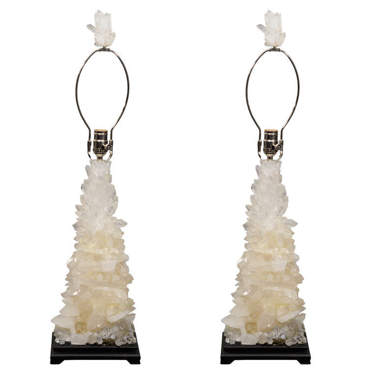 Pair of custom ivory quartz crystal lamps with ebony bases. Customization available in different sizes.
