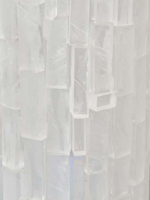Pair of frosted acrylic cylinder table lamps. Customization is available in different sizes.