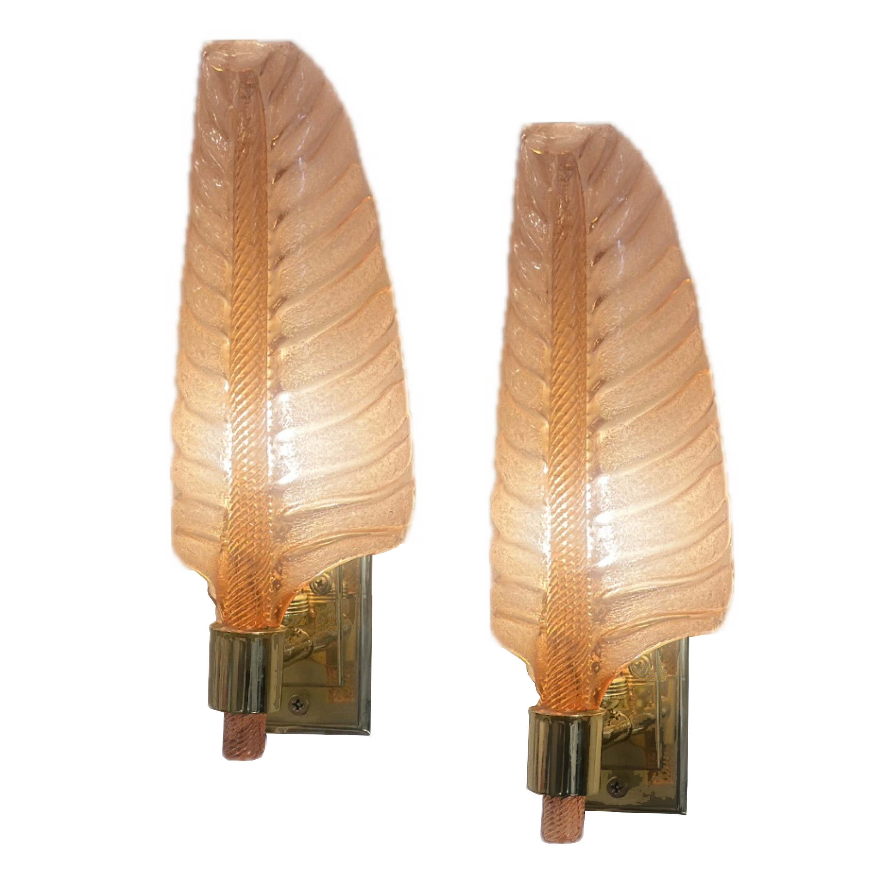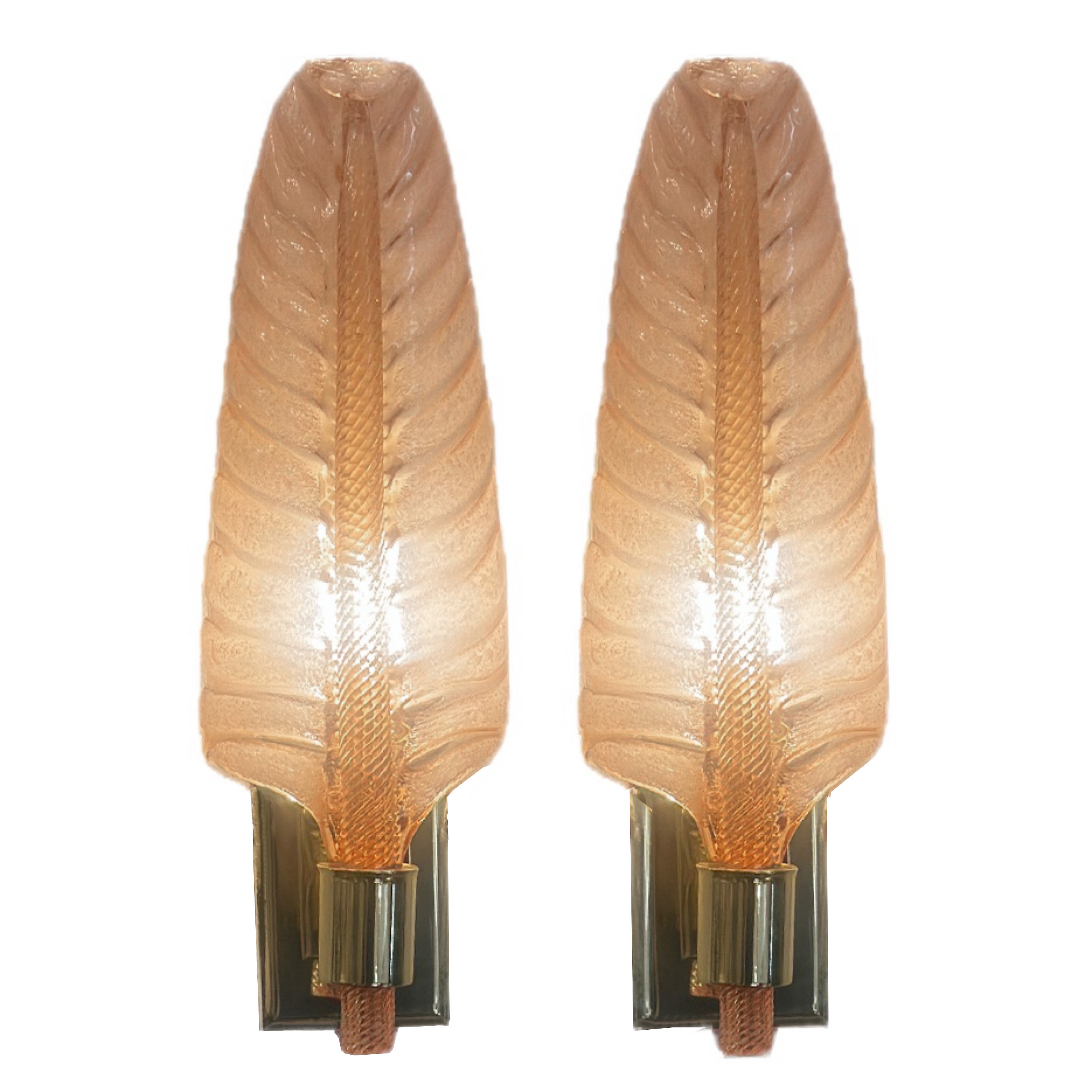 Illuminate your space with a work of art that reflects decades of artisanal craftsmanship and exquisite design. For generations, Seguso has been perfecting the art of glass making, crafting highly sought-after luxury and decorative items. Made in the mid-twentieth century, these blush colored glass and brass sconces embody timeless elegance, infused with the same attention to detail and skill that have defined the renowned glass makers for decades.