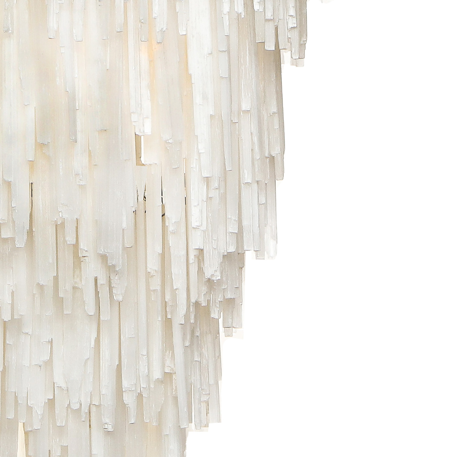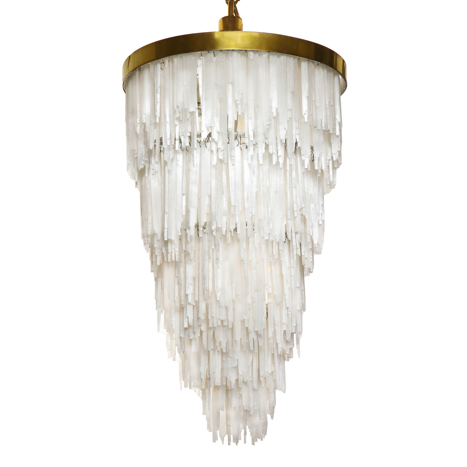 Striking tiered chandelier of cascading Selenite crystals with brass body and canopy. Italian, 1970's.