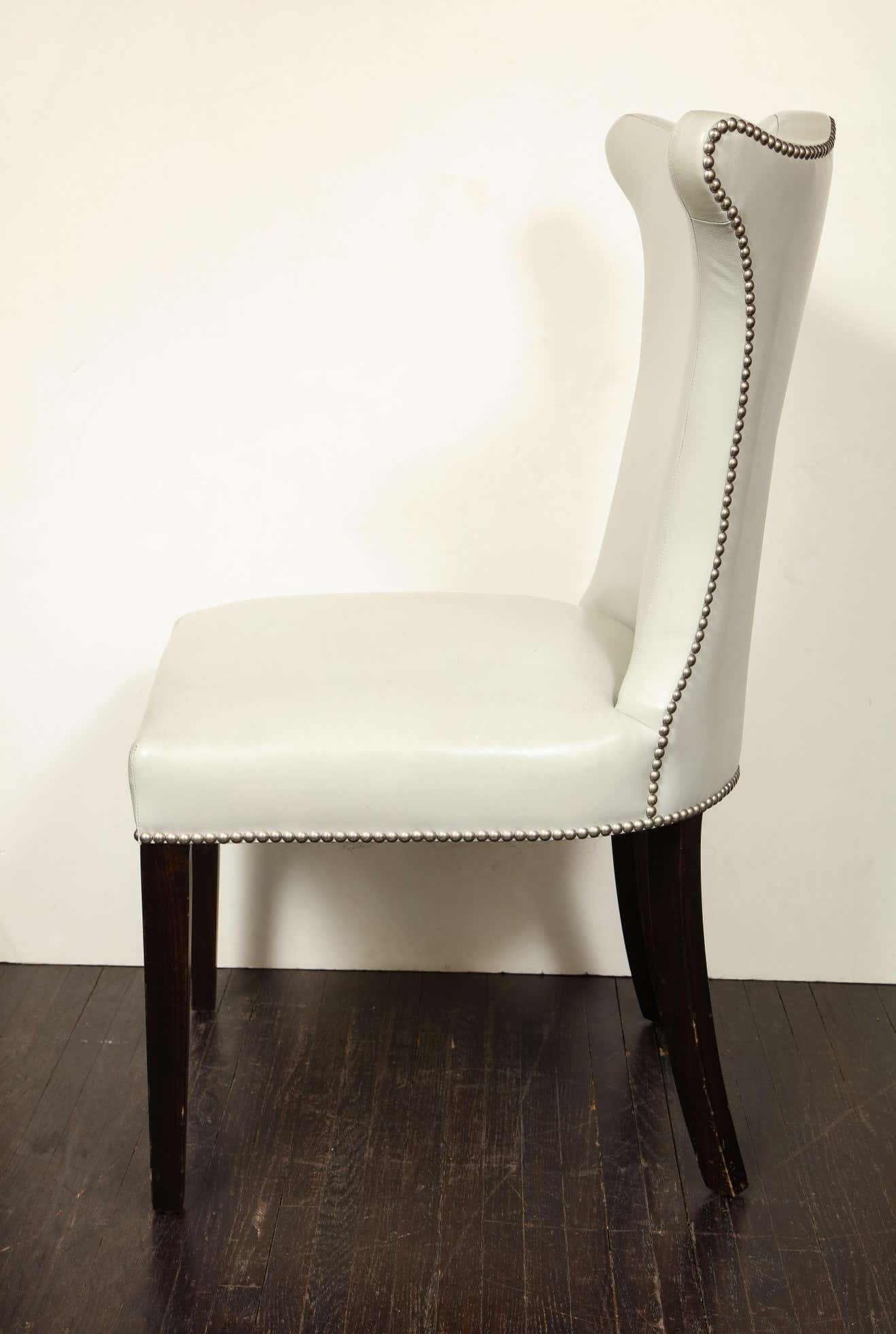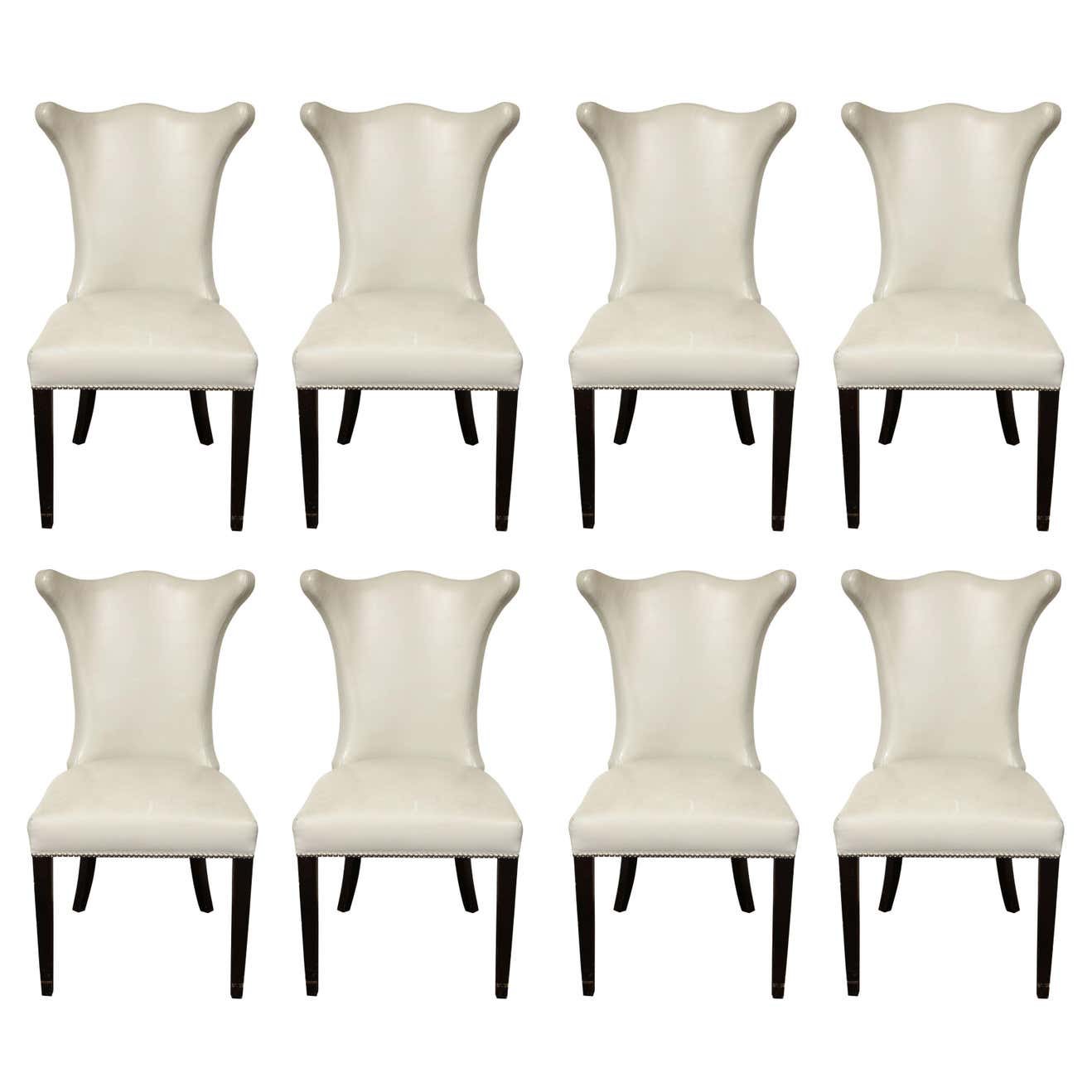 Set of 8 Leather Dining Chairs with Chrome Nailheads