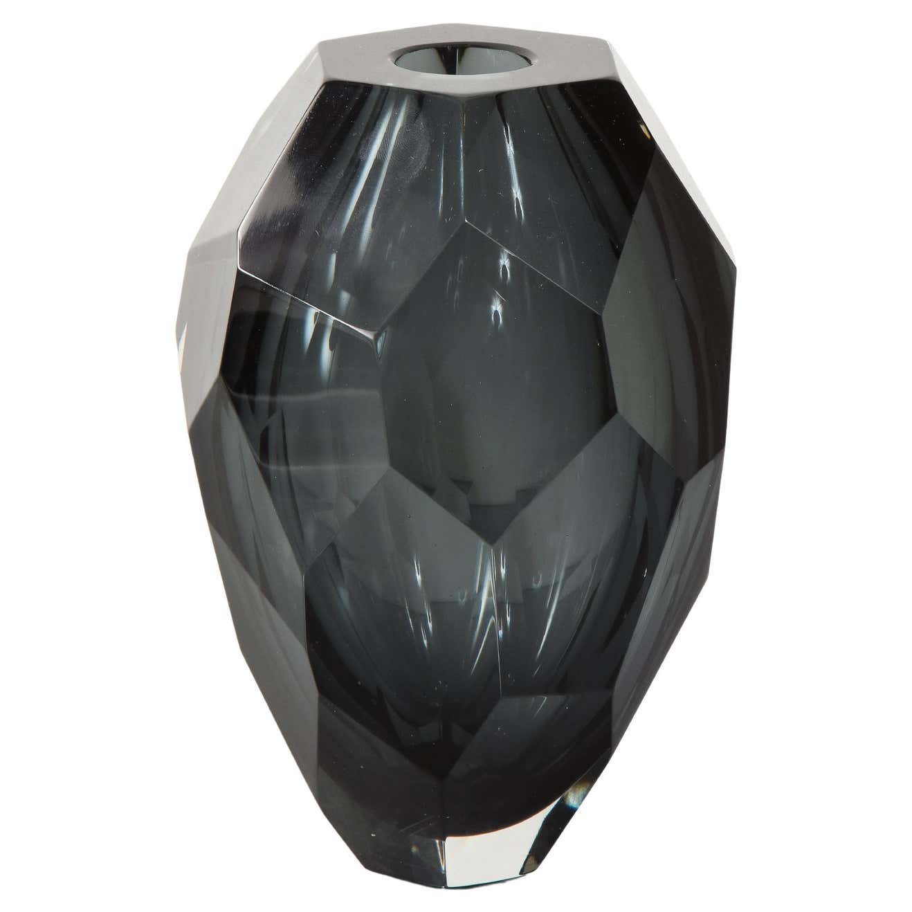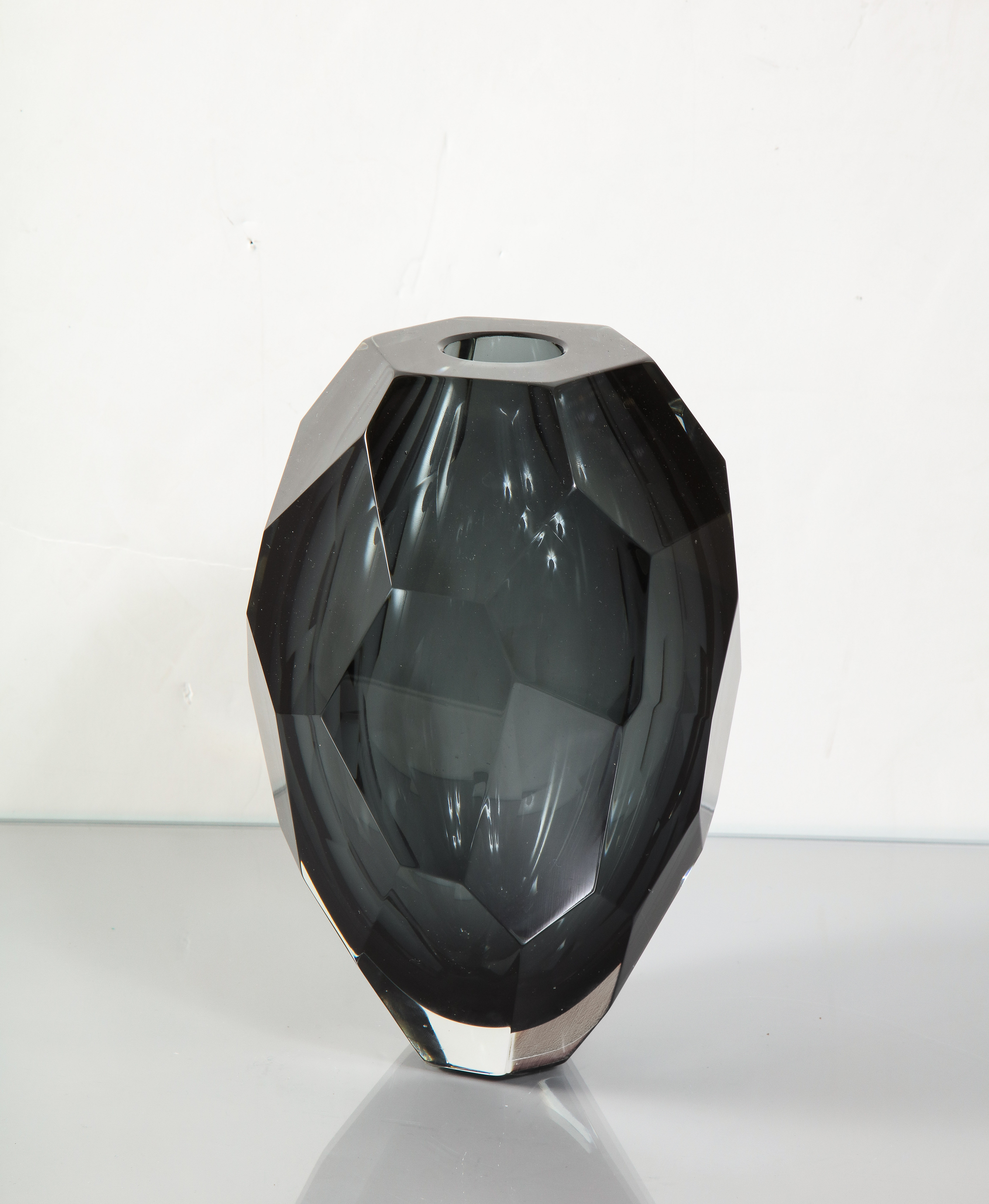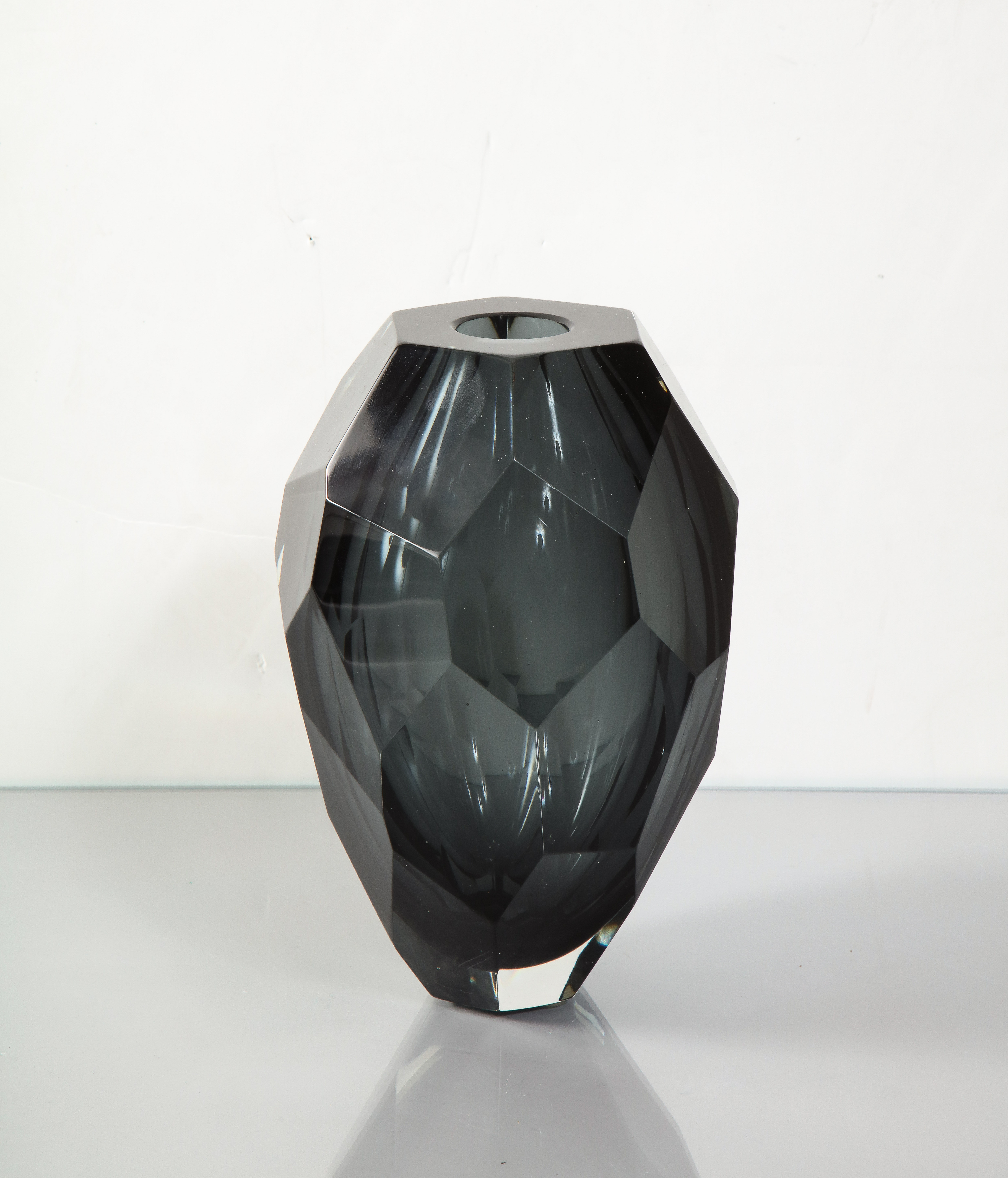 The smallest size available in the collection of Murano dark gray glass gem cut vase. It is made-to-order and available in different colors. x H Conditioin: Made-to-Order / New.