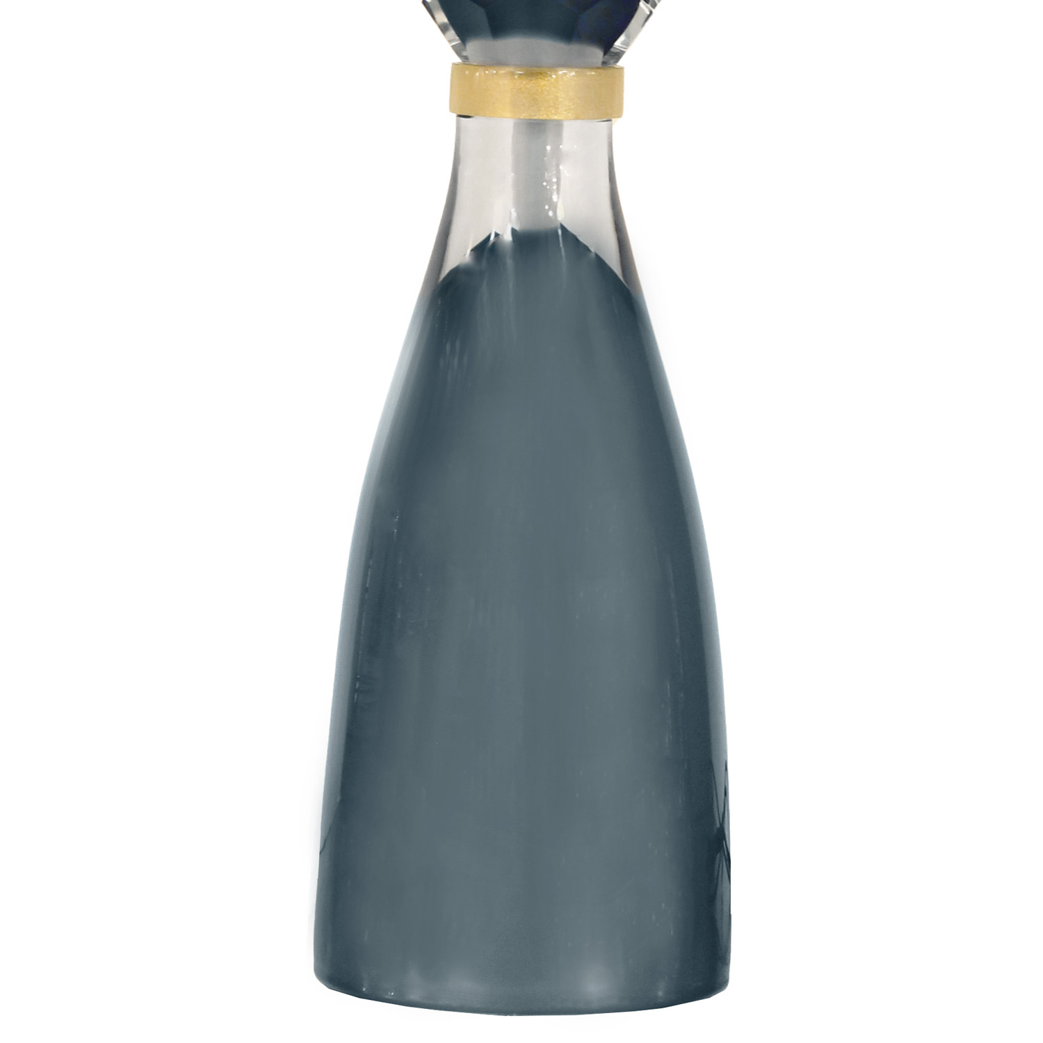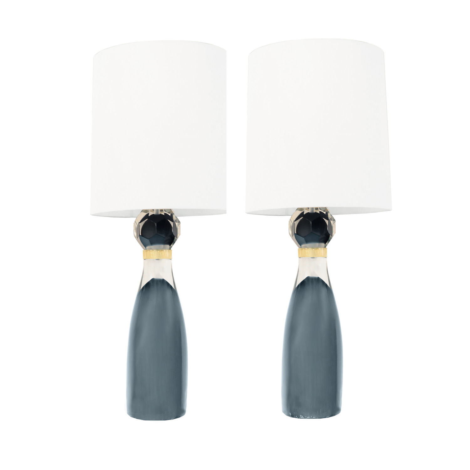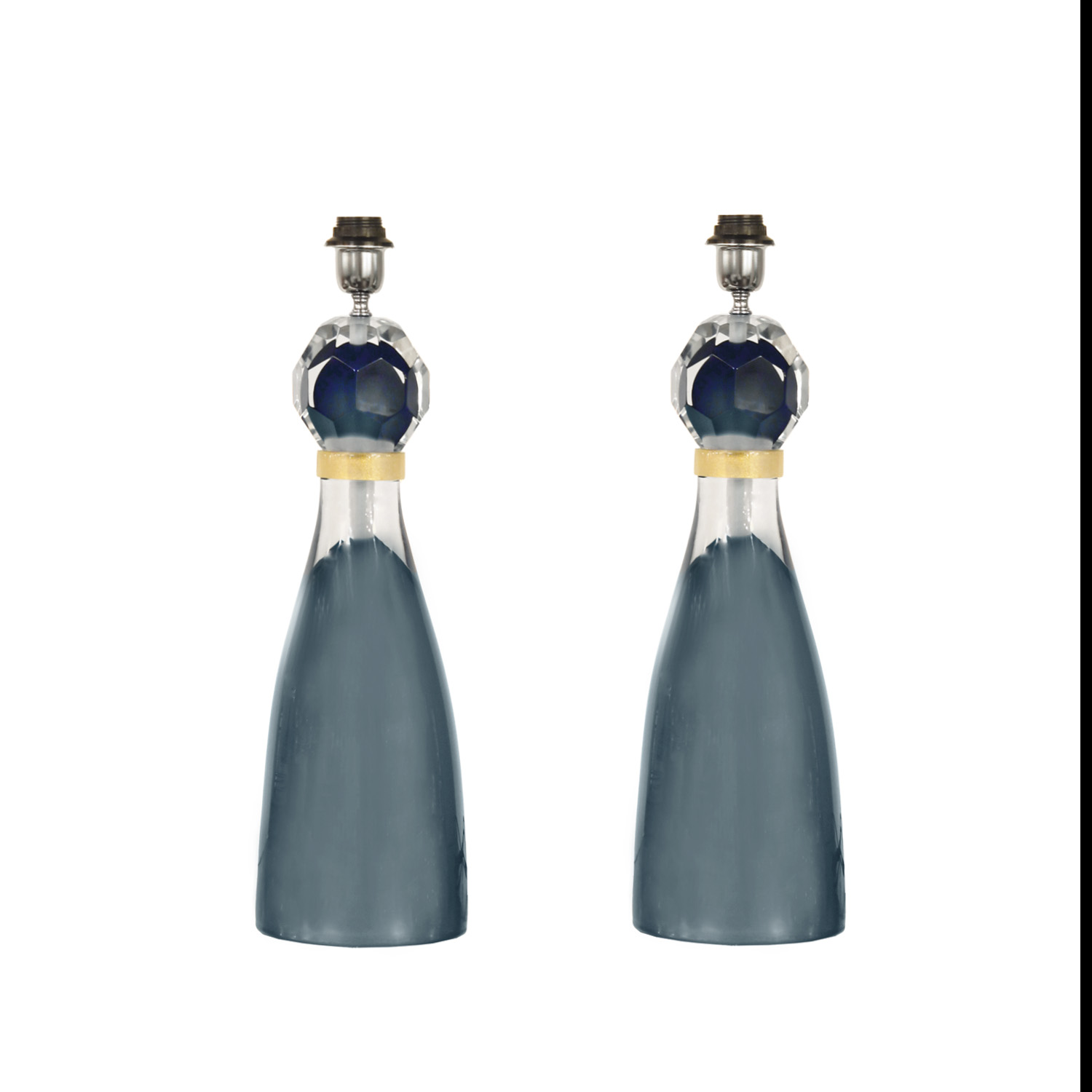 Available by special order, stunning pair of Murano sommerso glass table lamps with gold leaf inclusions and dodecahedron design shown in slate gray color. Italy. A pair of lite gray Brilli lamps is currently available in our NYC showroom.