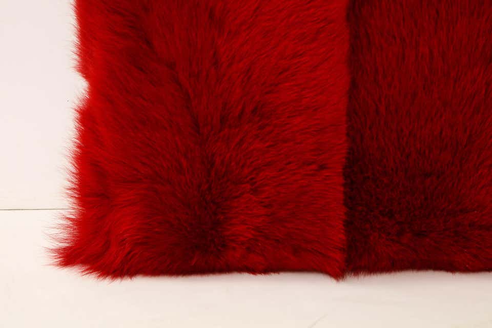 Ravishing Toscana long hair shearling pillow in red color with matching red colored leather backing. Soft and smooth in touch. It is made of genuine shearing with a zipper enclosure in a matching color, filled with down and feather, an square in size. Only one (1) available for immediate purchase. Custom orders are also available for different sizes and colors. Inquire with Venfield about customization and estimated production lead times.