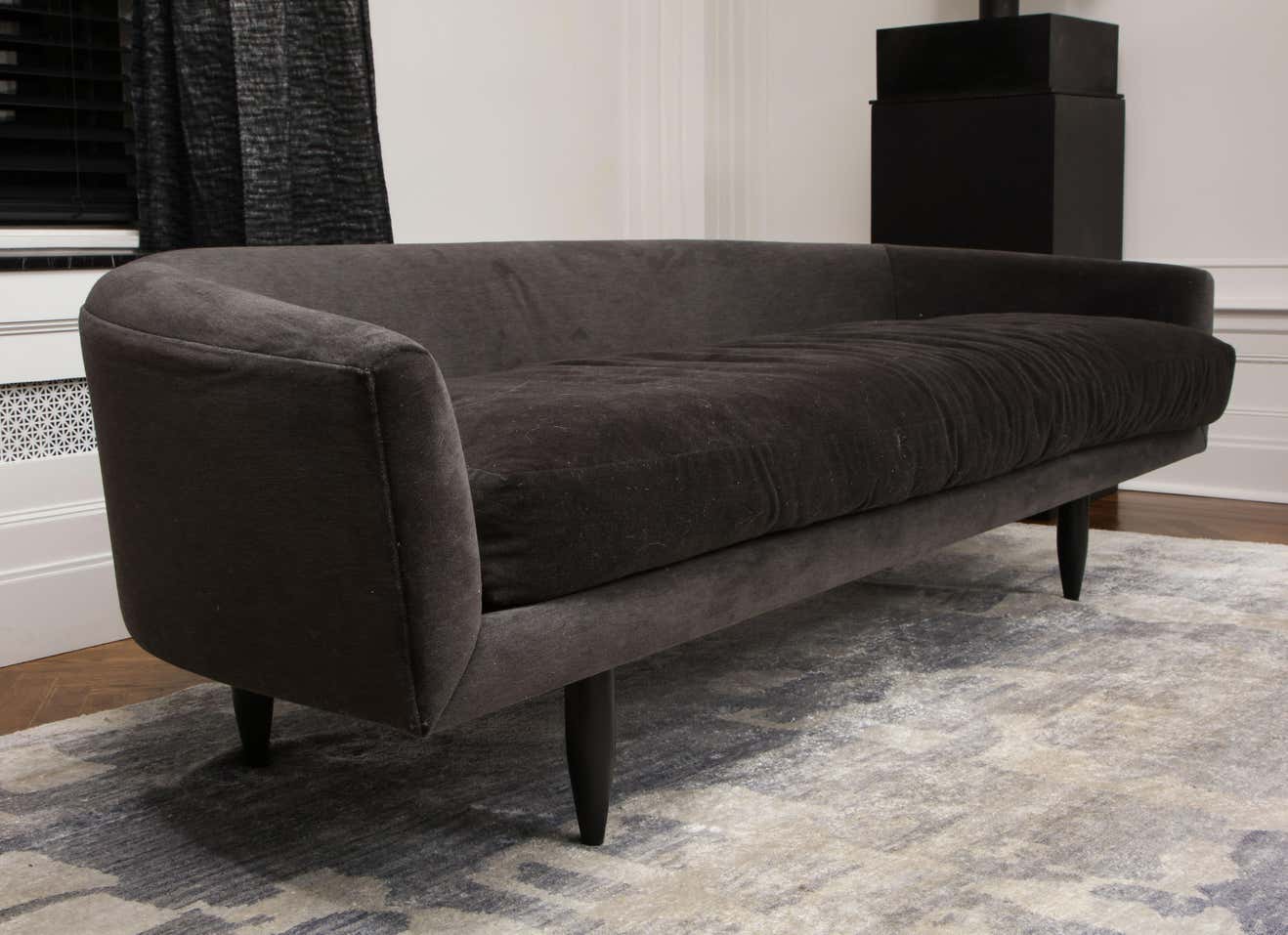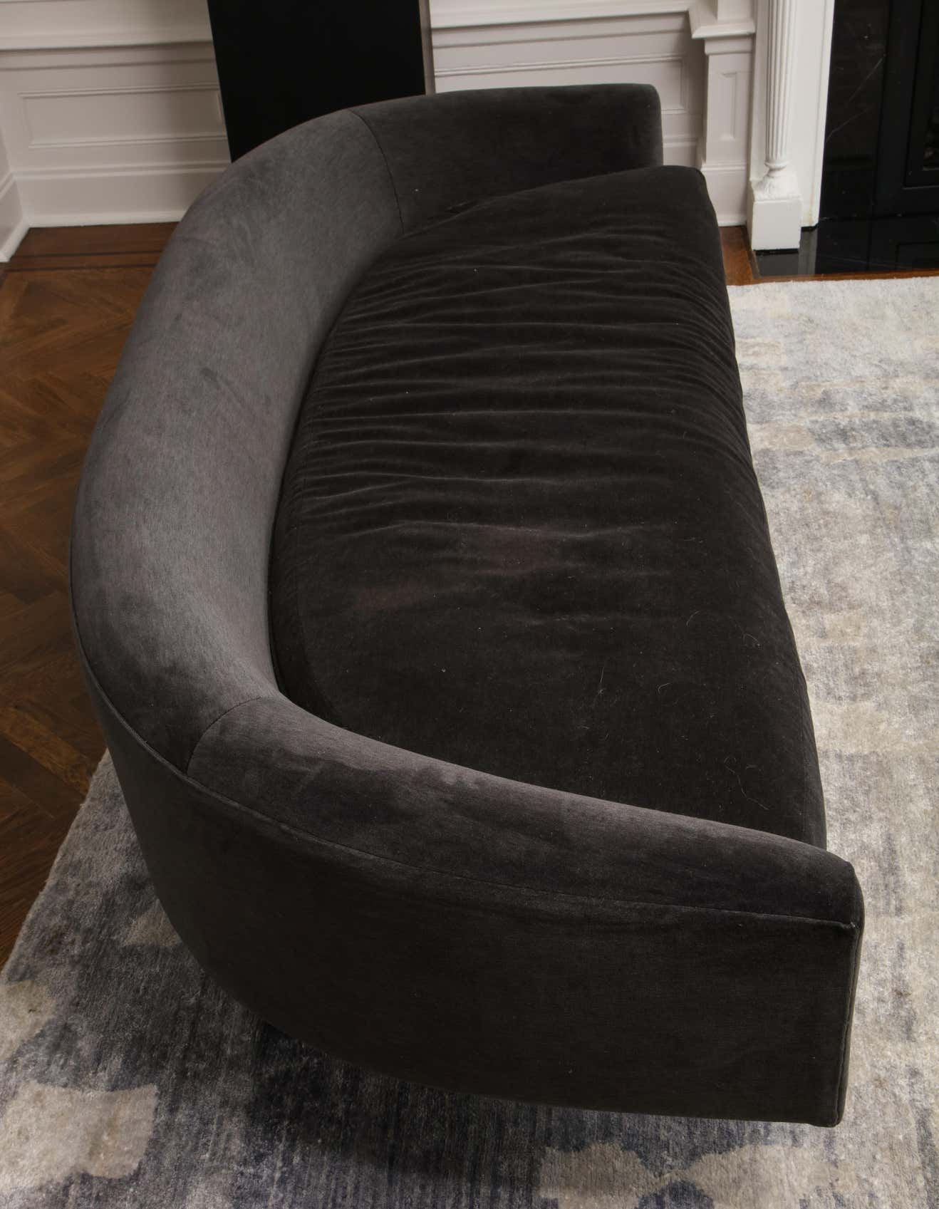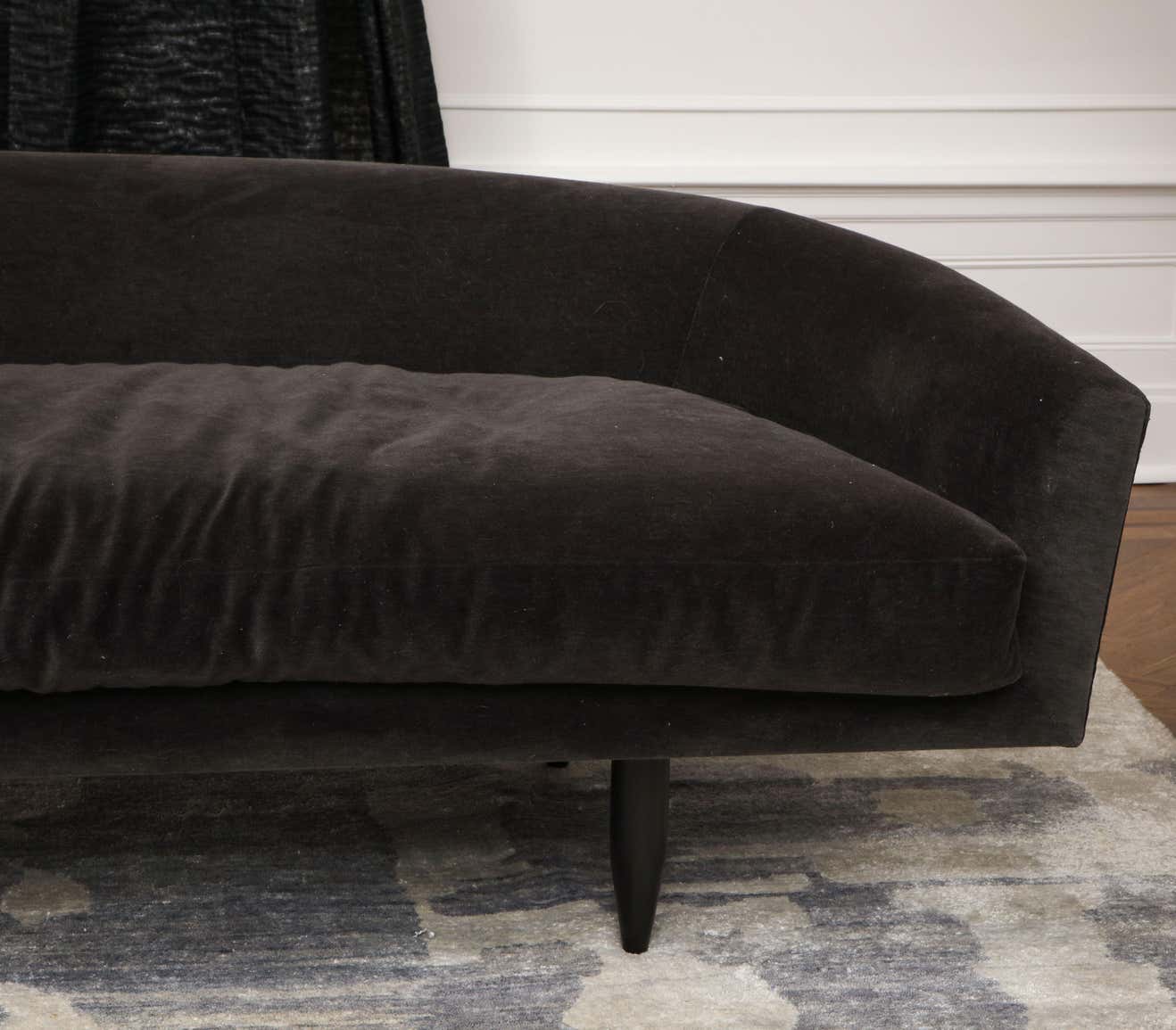 About Custom Gondola sofa designed by Venfield. The price does not include the cost of fabric/COM (Customer-Owned-Material). 12 yards of fabric are required to make the size listed. Custom options are available for different sizes, designs and finishes.