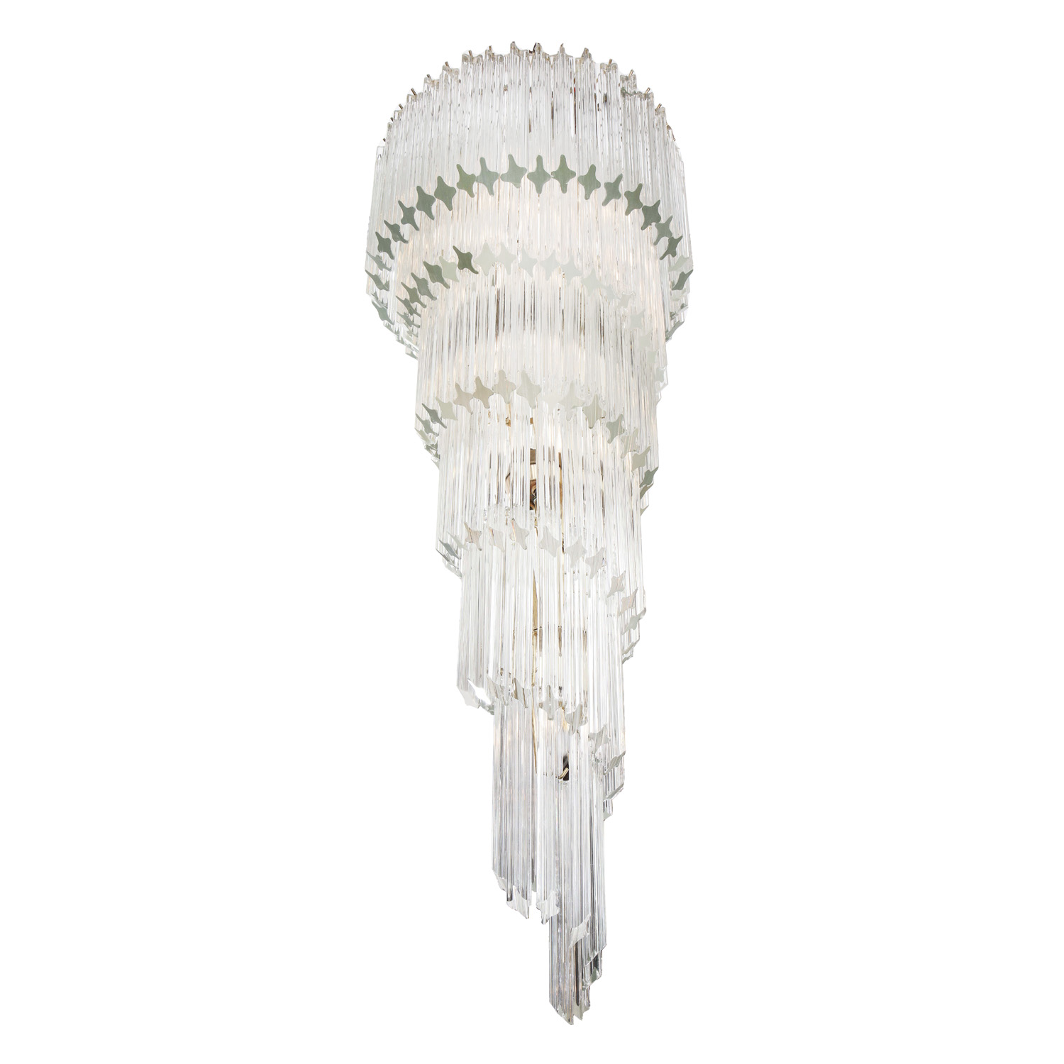 Iconic Murano quadriedri glass rod, cascading, spiral chandelier by Paolo Venini. Italy, 1970s.