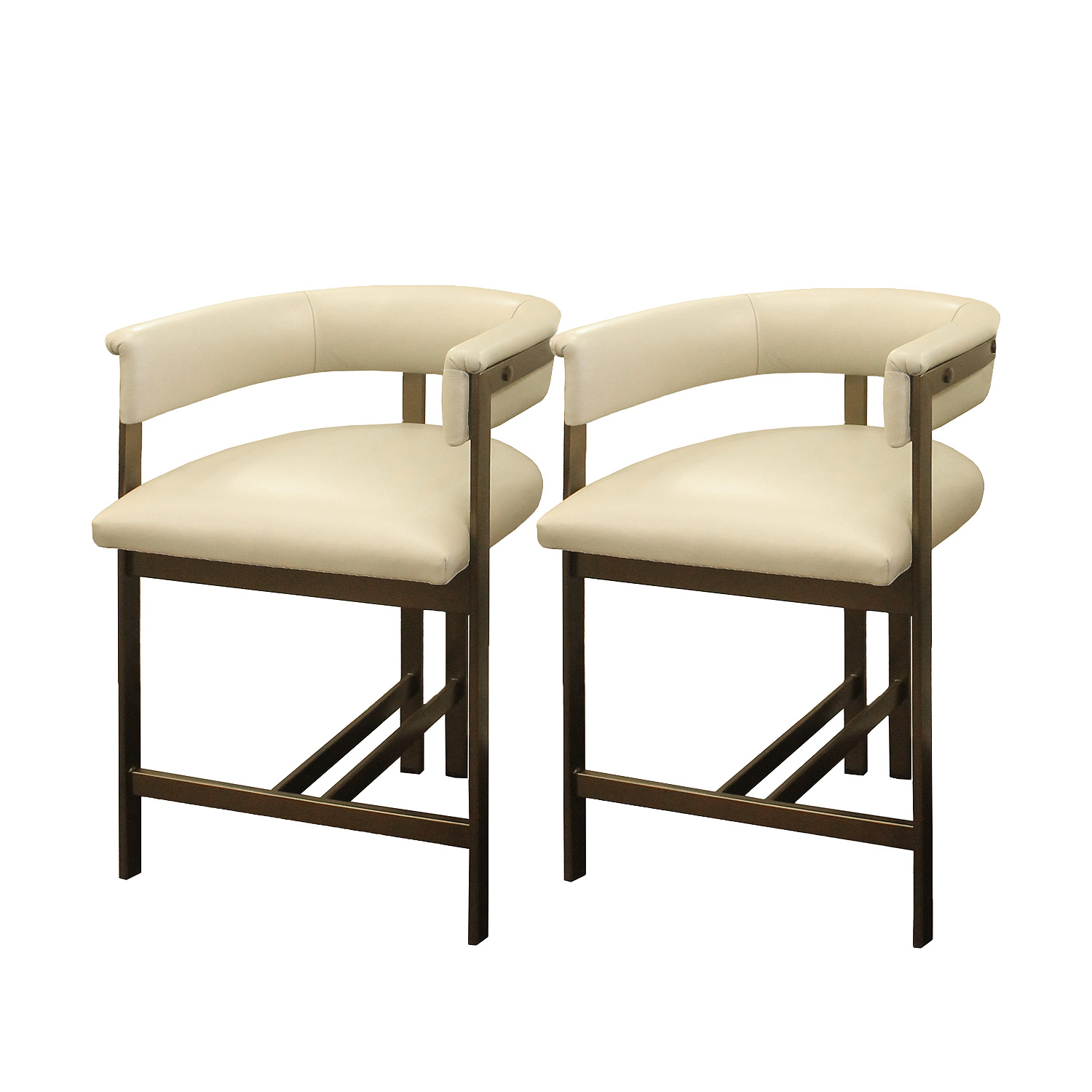 Made to order, custom counter and bar stool in the manner of Willy Rizzo upholstered leather.
