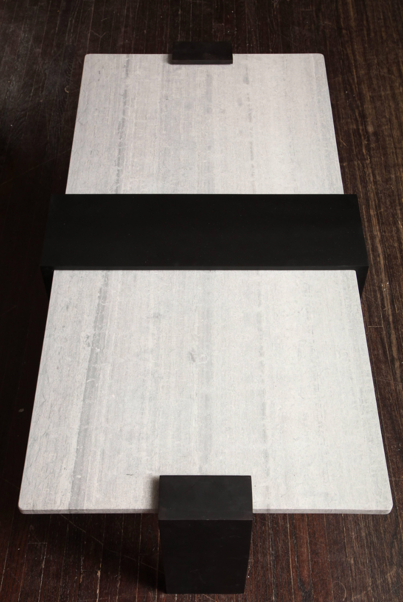 Custom Bronze Legs and Gray Stone Top Cocktail Table
